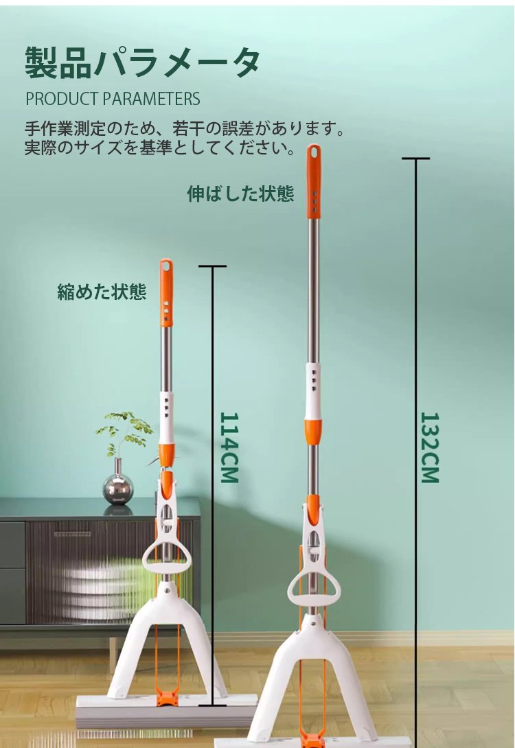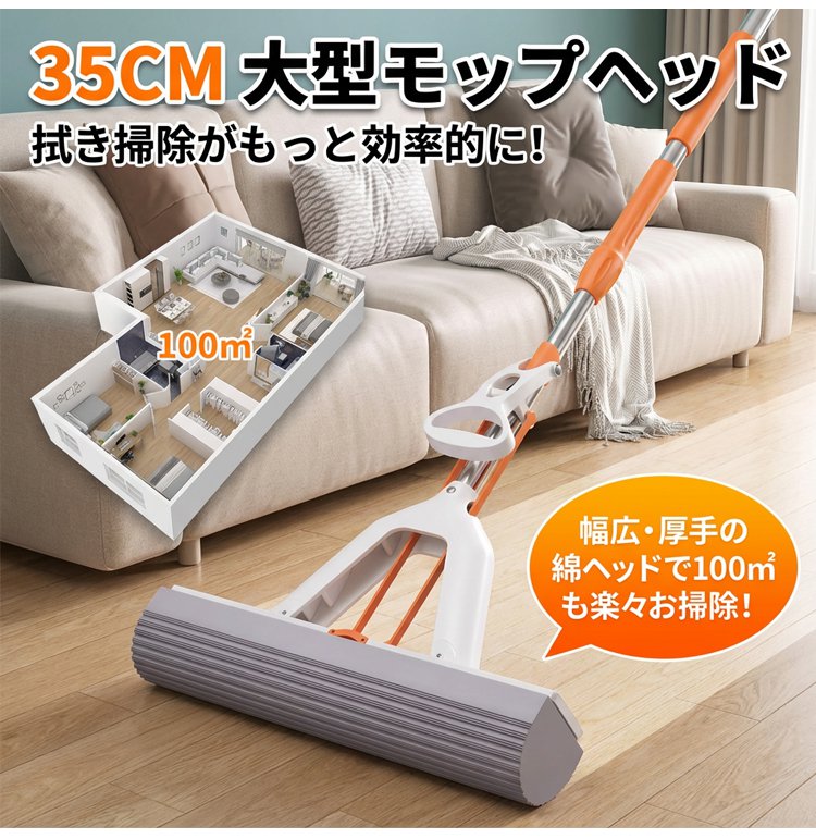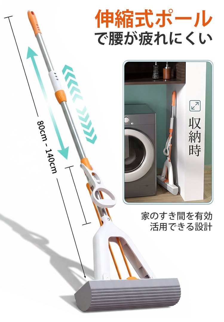 高吸水折りたたみ式伸縮スポンジモップ