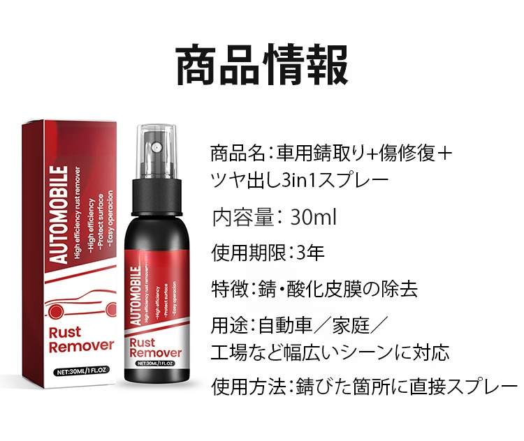 車用錆取り+傷修復+ツヤ出し3in1スプレー